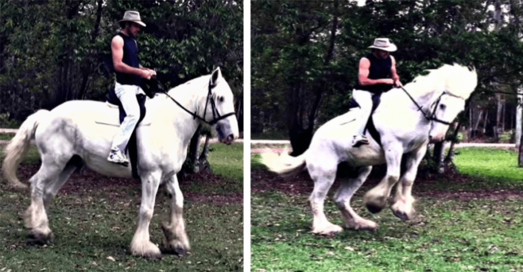 Draft horses are known for being some of the most gentle and calming horses in the world, that’s why we were surprised when we watched this unusual video of a draft horse who was bucked off and thrown his rider from the saddle. Mark, the rider starring in this video, is a great equestrian and during the time the video was shoot, he had just gotten a new gorgeous draft horse.